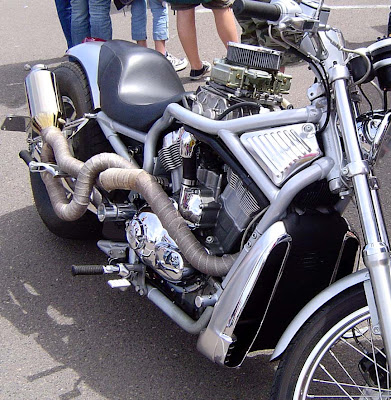 Bikes among the booths, the 2nd has a 4 barrel supercharger